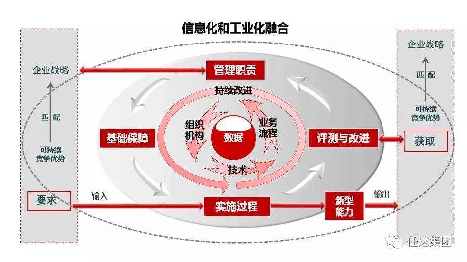 兩化融合管理體系是企業(yè)系統(tǒng)地建立、實(shí)施、保持和改進(jìn)兩化融合過(guò)程管理機(jī)制的通用方法,覆蓋企業(yè)全局,可幫助企業(yè)依據(jù)為實(shí)現(xiàn)自身戰(zhàn)略目標(biāo)所提出的需求,規(guī)范兩化融合相關(guān)過(guò)程,并使其持續(xù)受控,以形成獲取可持續(xù)競(jìng)爭(zhēng)優(yōu)勢(shì)所要求的的信息化環(huán)境下的新型能力。