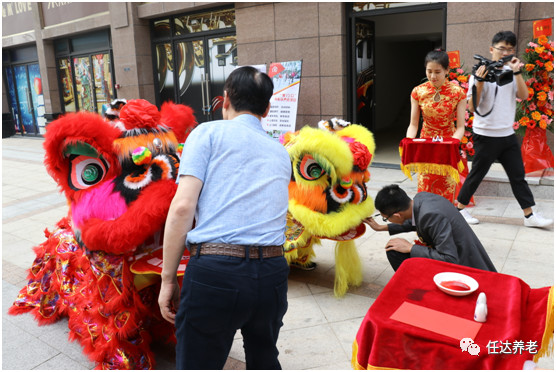 接著,舉行的是點(diǎn)睛儀式,沙井街道辦事處周榮國(guó)副主任和任達(dá)養(yǎng)老產(chǎn)業(yè)集團(tuán)副總裁蔡名城代為祥獅點(diǎn)下尊貴的一筆。