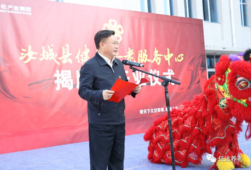 任達(dá)養(yǎng)老產(chǎn)業(yè)集團(tuán)副董事長(zhǎng)兼總裁蔡茂城發(fā)表致辭。蔡副董表示:任達(dá)養(yǎng)老產(chǎn)業(yè)集團(tuán)將全力支持汝城縣健康養(yǎng)老服務(wù)中心發(fā)展,將中心打造成集養(yǎng)老、養(yǎng)生、醫(yī)療、旅遊等多功能為一體的綜合性養(yǎng)老機(jī)構(gòu)。